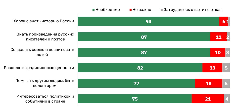 К празднику Дня народного единства компания ИНСОМАР провела исследование, чтобы понять, какие жизненные ценности россияне считают наиболее важными для молодёжи сегодня.